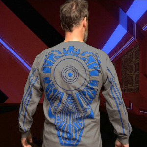 Greetings, programs! Using stills of the original TRON costumes, I painstakingly hand-digitized to pixel-accuracy the graphics for the front, back, and sleeves of this tee. The result is a unique TRON fan item you won't find anywhere else.