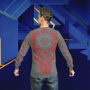 Greetings, programs! Using stills of the original TRON costumes, I painstakingly hand-digitized to pixel-accuracy the graphics for the front, back, and sleeves of this tee. The result is a unique TRON fan item you won't find anywhere else.